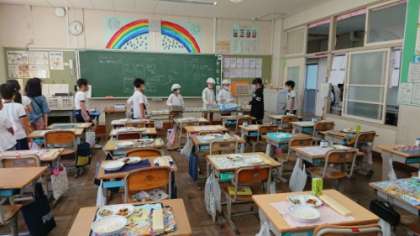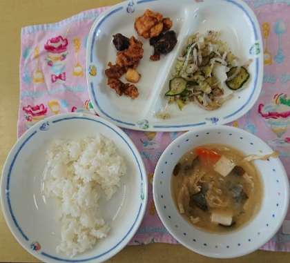 この日の給食も載せました。子どもたちはおいしそうに食べていました。