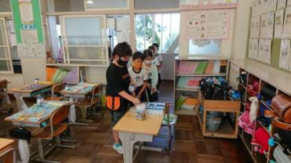 3年生の給食準備中の様子です。