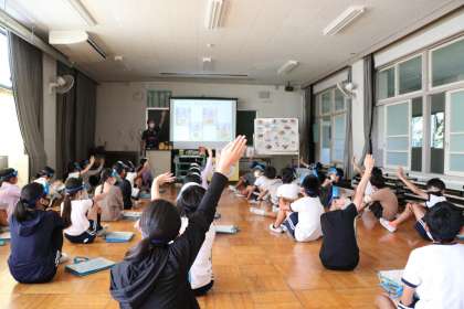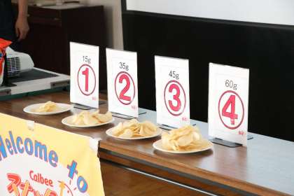 4組では、カルビーの方が来て、おやつの食べる量と時間についてお話をしていただきました。おやつを食べるときにエネルギー量や賞味期限に気を付けて食べることを学びました。ご家庭でもお声かけいただけるとありがたいです。