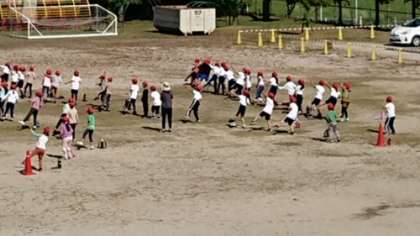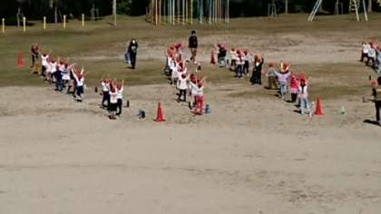 1年生が運動場で練習を始めました。ダンスは練習してきましたが体型移動は難しかったですね。運動会までにできるようにします。