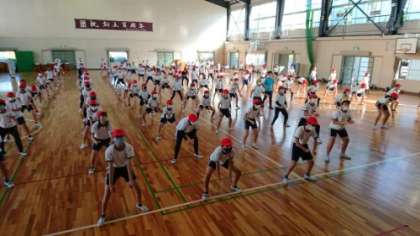 6年生が体育館で運動会の練習をしていました。ソーランです。かなり体力のいる踊りですが、日に日にかっこよく踊れるようになっています。運動会当日が楽しみです。
