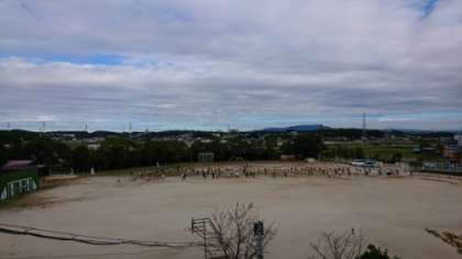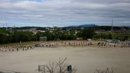 子どもたちは元気に運動会の練習をしています。運動場での場所の確認をしながらの練習です。