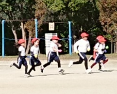 運動場の真ん中を一生懸命走りました。 10時46分 終了