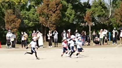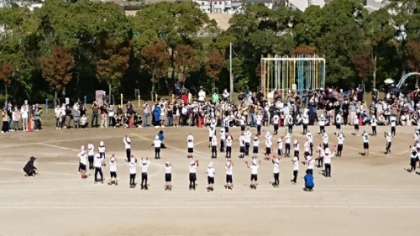大きくなりました。かわいいだけでなく、今年度はかっこよくクールに踊りました。バンダナと手袋で1年生より大人っぽさを演出していました。小学校の1年間の成長は大きいことがダンスにも表れました。