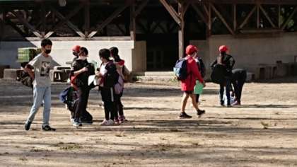 オリエンテーリングがもうすぐ終わります。ファミリー広場に集まってきました。