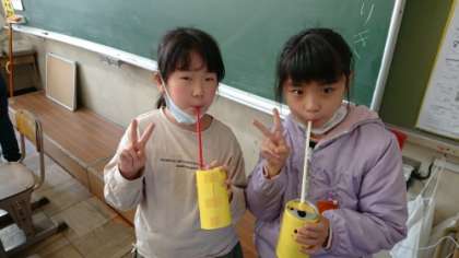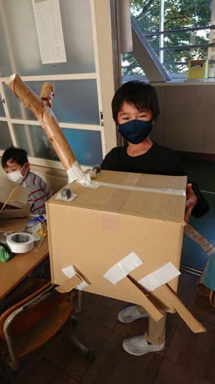 吹くとなる缶や大きなカブトムシ、手のひらで跳ねるおもちやなど、タブレットで作りたいものを調べて、アレンジしている子もいました。みんな楽しそうで作ったものを見せてくれました。