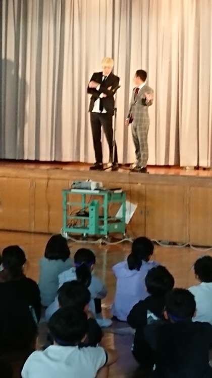 笑劇波さんは、最初、漫才でスマホでの親子の会話をしてくださり、笑いありの中でスマホの使い方を教えてくださいました。その後、劇を通して、スマホのルールや課金について、楽しくわかりやすく教えていただきました。