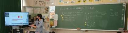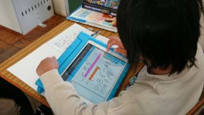 それから、個別にタブレットの図に分かっていることを書き込みながら問題を解いています。電子黒板には全員の解いている画面が映し出されています。説明する時には、説明する子の画面を大きくすることができます。