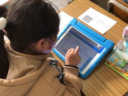 ワークシートをタブレット上で配付し、そこに説明を書き込み、発表をしています。