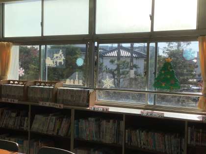 読み聞かせに来てくださったかたが司書さんと一緒にクリスマスに向けて貼り替えてくださいました。