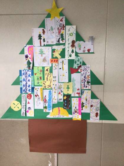 2年生の廊下にクリスマスツリーが掲示されていました。 クリスマスが待ち遠しいのですね。