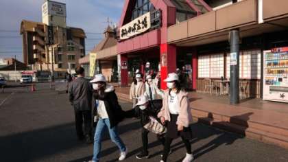 バスの中では、話さないですむクイズやビデオ鑑賞などで過ごしています。