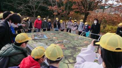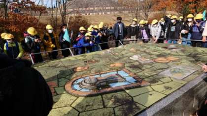 模型にある古墳の一つに登っていきます。