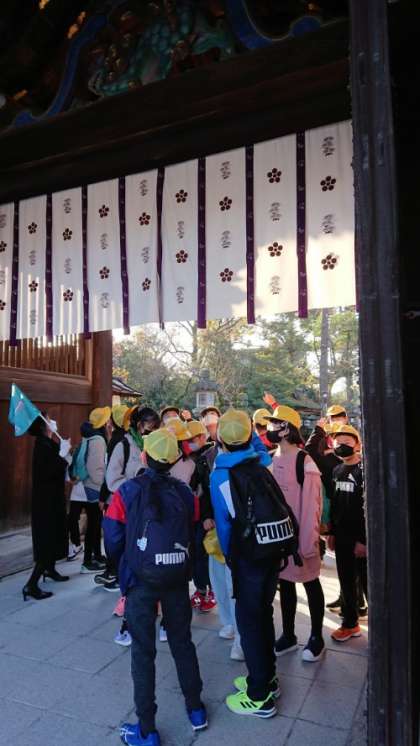 三光門を見上げています。 月と太陽を探しています。