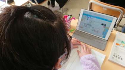 タブレットで配布されたシートに書き込みながら解いていました。