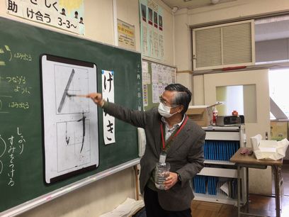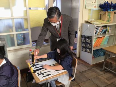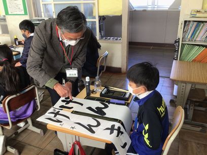 12月14日火曜日に、豊田書道連盟より講師の方に来ていただき、書写指導を行いました。書き初め大会で書く「げんき」の筆の運び方や平仮名特有のつながり、文字のバランスなどを意識した書き方のこつを教えていただき、お手本に近い字を書こうと集中して習字に取り組む姿が見られました。