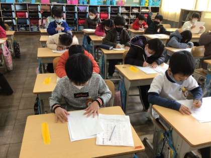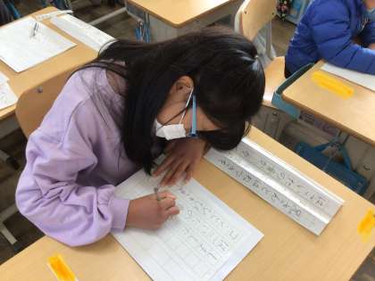 昨年の経験が大きいです。お手本の使い方にも慣れています。 集中して書いています。