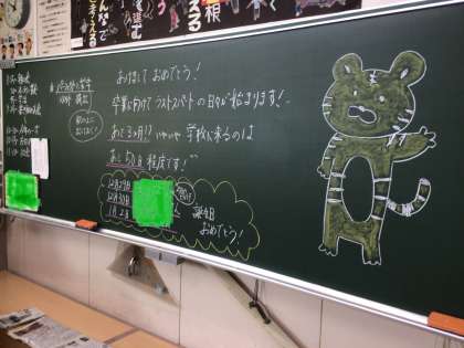 黒板日記です。かわいい寅が描かれてありますね。