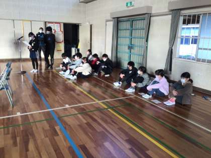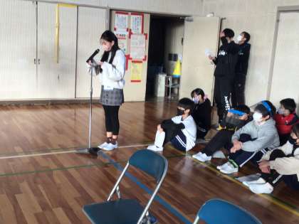 寒さとコロナ対策で、にじいろ集会は6年生だけが体育館に、あとの学年は教室でリモートで行いました。