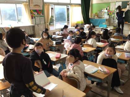 下の2枚の写真は道徳科の授業です。