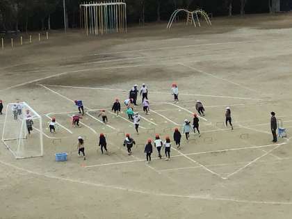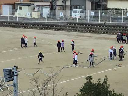 3階から運動場をみると、3年生と4年生が体育を行なっていました。