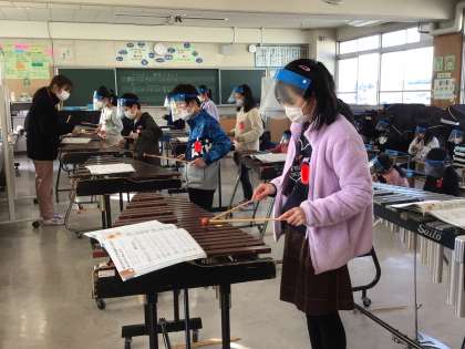 コロナウイルス感染予防をしながら、木琴の練習をしています。