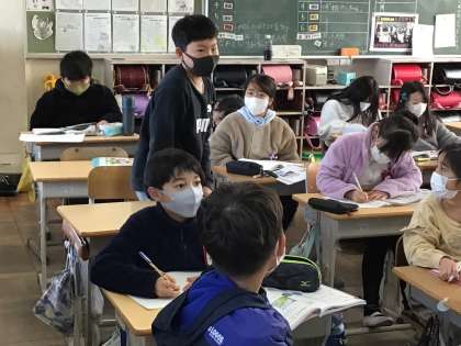 4年生の理科の授業です。 絵から四季の特徴を探しています。
