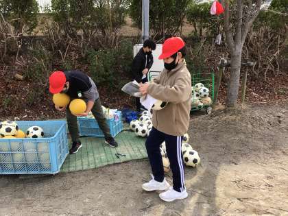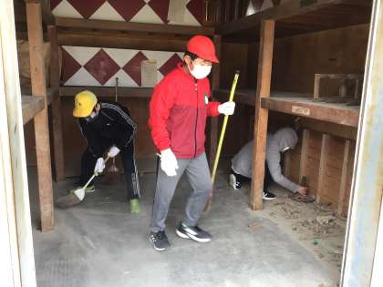 運動場の体育倉庫の整理整頓と掃除をしてくれています。