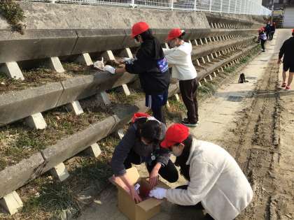 6年生子たちが水仙とチューリップの球根を植えてくれました。 咲くのが楽しみです。