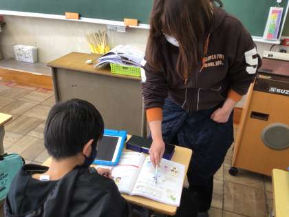 できた子が手を挙げて、先生にアドバイスをもらいながら完成していきます。