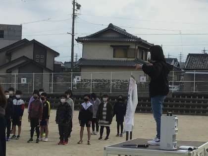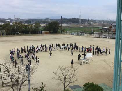 6年生が、音楽の専科の先生に、「旅立ちの日に」を運動場で歌ってプレゼントしました。