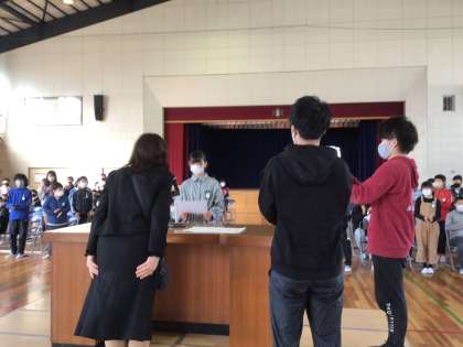 6年生の1カ年皆勤賞の表彰をしました。