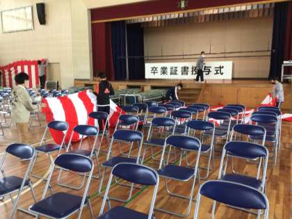 5年生の子たちは会場づくりや6年生の教室をきれいにすること、昇降口などを重いプランターを運ぶことなど、一生懸命おこなっていました。最高学年になることをすでに意識しているようです。