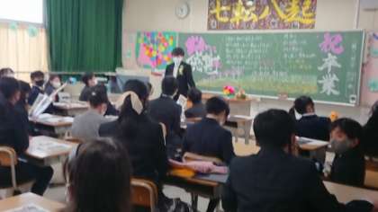 卒業式の緊張感から解放され、どのクラスも楽しそうです。