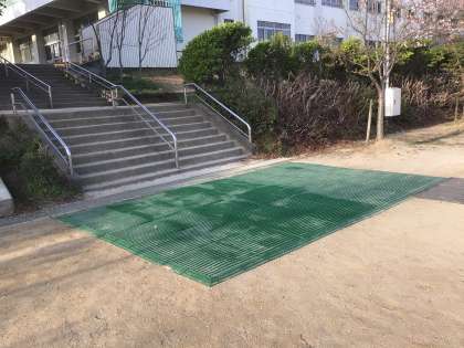 校舎から出て、階段を降りて運動場に出るところが水捌けが悪かったです。