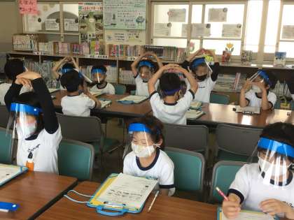 3年生が図書室で授業を行なっています。