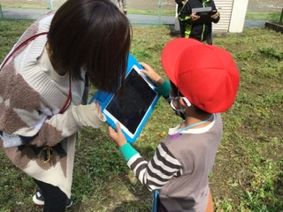 タンポポやオオイヌノフグリなど、野草の花がきれいな季節になりました。みんなで校庭に出て、お気に入りの花を見つけました。とても小さな花を見つけた子、カエルやカタツムリなどの動物が気になる子など、いろいろな子どもの姿が見られました。