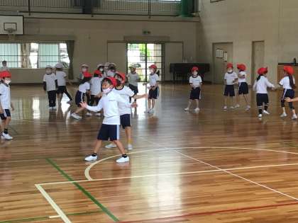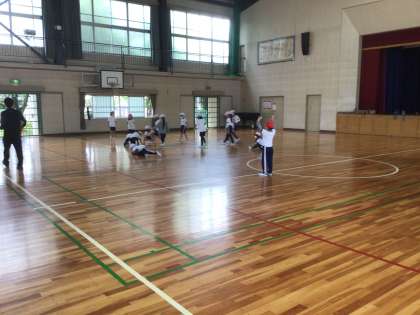 2年生の体育の授業です。 ドッジボールを思いっきりやっています。 楽しんでいました。