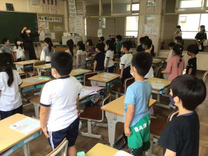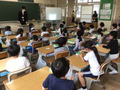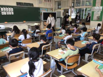 今日は園の先生たちがお見えになりました。 1年生のこたちの様子を見に来てくださいました。
