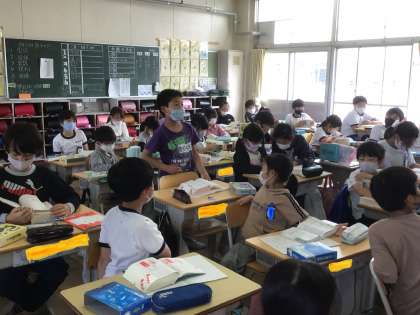 4年生の国語の授業です。 漢字辞典で漢字の意味や成り立ちを調べています。