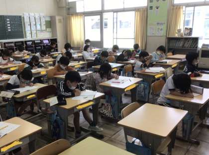2年生の国語の授業です。 漢字の学習をしています。 筆順や画数を学んでいます。