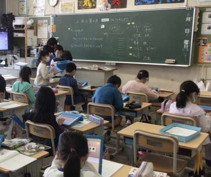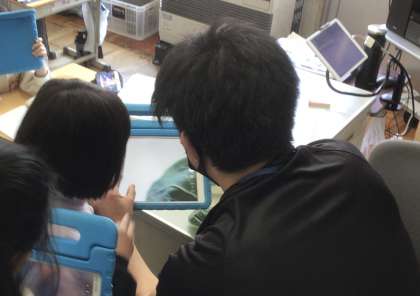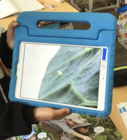 中庭のキャベツの葉に蝶の卵を見つけました。