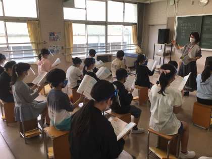 歌を歌う時にはフェイスシールドをしてきれいな歌声を響かせています。