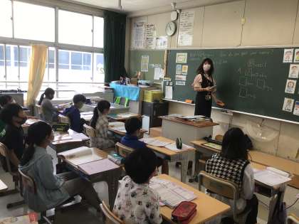 5月19日、5年生は英語の授業を行なっています。 英語で自己紹介をしようというめあてで学習しています。