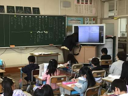 さとうとしおのことで知っていることを発表してノートに書いています。