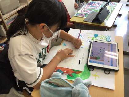 5年生は図工の鑑賞をタブレットを使って行なっています。