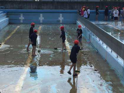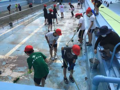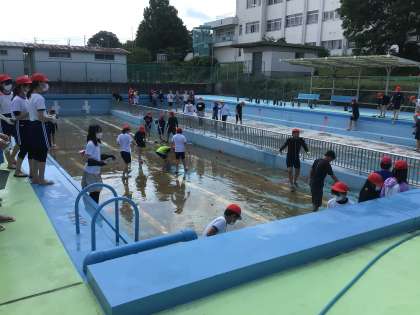 6年4組5組の子たちが低学年プールの中を掃除してくれました。