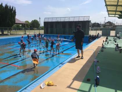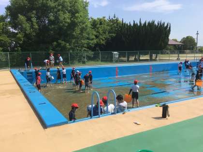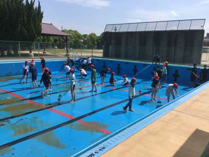 6年2、3組の子たちが高学年プールを掃除してくれました。