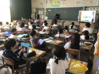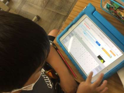 タブレットでモンシロチョウについて調べています。