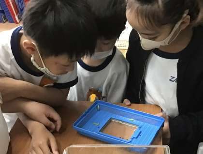 調べている間に、少しずつの人数で実物の幼虫やさなぎも見て観察していました。